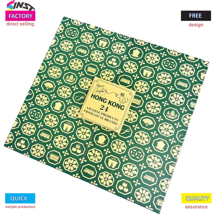 Questa confezione regalo del calendario dell'Avvento presenta un design per il conto alla rovescia delle vacanze con 24 cassetti e 1 scomparto speciale, ripristinando perfettamente la sensazione cerimoniale dell'unboxing natalizio. È adatto a vari prodotti come cioccolato, campioni di bellezza e piccoli accessori; Lo sfondo verde intenso abbinato alla stampa in lamina d'oro, completato dallo skyline della città e dai motivi a stella, non solo emana una trama di fascia alta ma emana anche un'atmosfera festosa, rendendo l'esposizione sullo scaffale estremamente attraente.