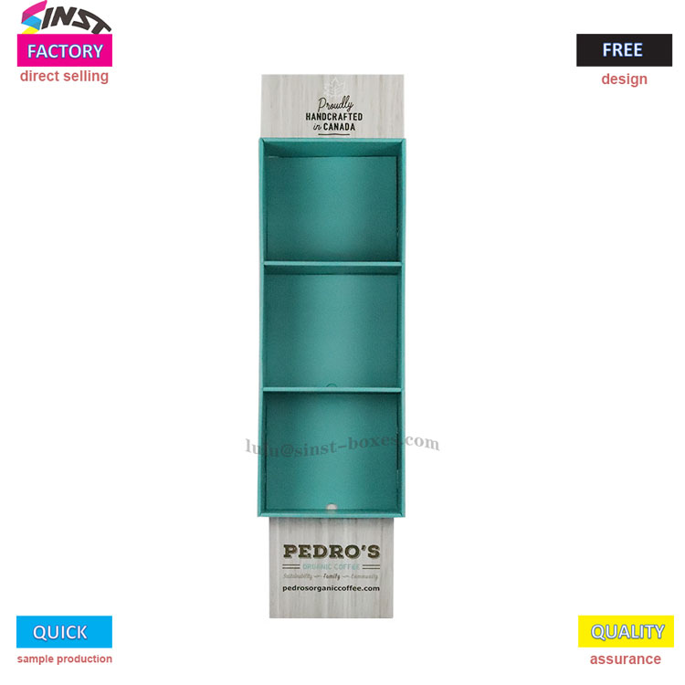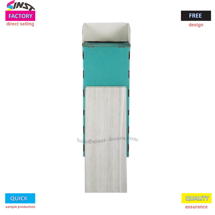 Questo espositore ondulato di cancelleria viene utilizzato principalmente per esporre vari articoli di cancelleria. Il corpo complessivo è di forma rettangolare ed è realizzato in legno chiaro o materiale con venature del legno finto bianco, che sembra rinfrescante e strutturato. Sulla parte anteriore sono stati appositamente progettati tre vani portaoggetti aperti, nei colori verde o blu-verde, perfetti per ordinare e riporre la cancelleria. Che si tratti di libri, quaderni vari o diversi stili di penne, possono essere tutti posizionati in modo sicuro all'interno. Inoltre, questo espositore ha una struttura trapezoidale leggermente inclinata in avanti, che facilita il raggiungimento e il posizionamento degli oggetti senza troppi sforzi.