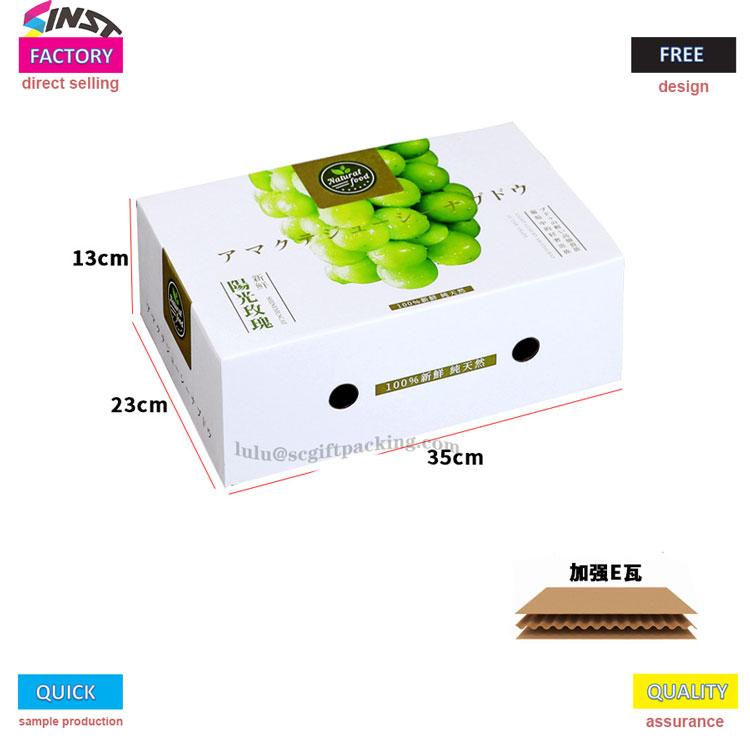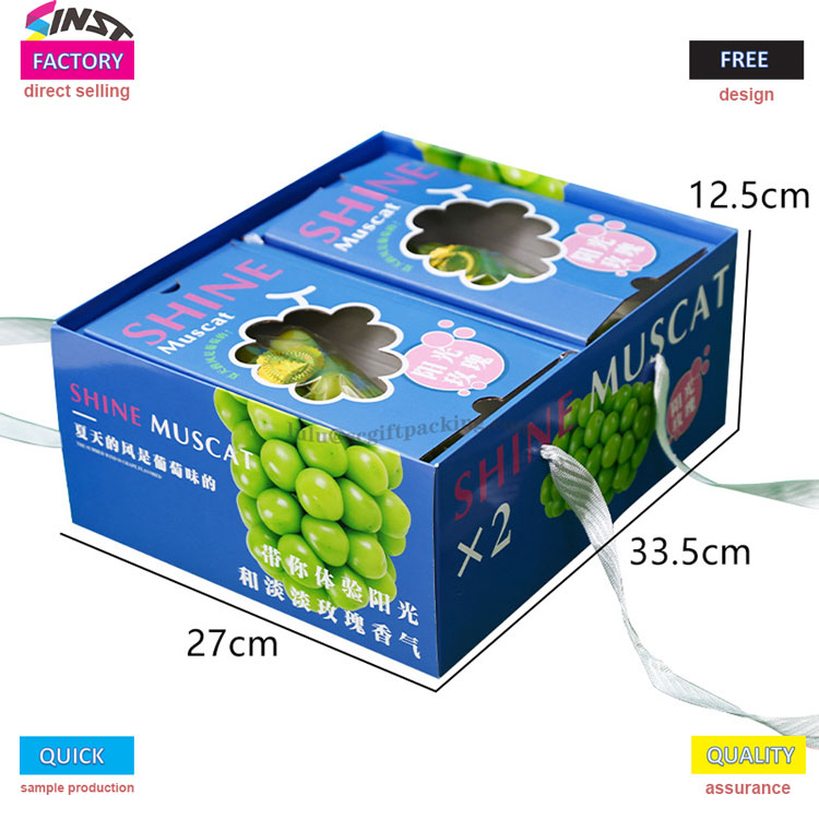Come fabbrica di imballaggi di fonte, Sinst ha lanciato scatole di imballaggio specifiche di uva in più dimensioni e colori, adatti a mercati di e-commerce, regalo e alimenti freschi! Il corpo principale è realizzato in materiale e-piastrello rinforzato (resistente alla pressione e alla caduta), fornendo schemi di colore classici come verde, blu e bianco, abbinato a slogan a base di scenari come "Sunshine Rose" e "Il vento estivo è sapore di uva". Il design trasparente della finestra/cinghia manuale mostra intuitivamente la freschezza dell'uva, rendendola una "scelta versatile" portatile e accattivante per l'imballaggio di scatole regalo per uva!