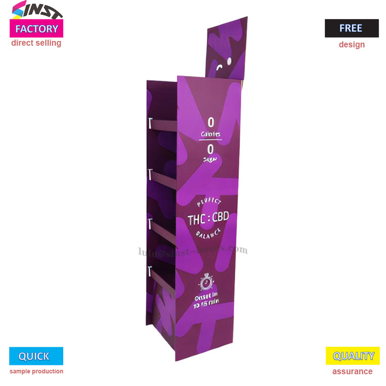 Cosa c'è di buono? Innanzitutto, il colore è viola brillante con alcuni motivi giocosi, che può essere posizionato accanto alla cassa o allo scaffale e attira immediatamente l'attenzione della gente; Inoltre, è diviso in più livelli, che possono esporre molti piccoli oggetti e non occupare spazio, consentendo a più persone di vedere questi piccoli oggetti nel negozio; Inoltre, questo scaffale è realizzato in cartone, il che consente di risparmiare sui costi e di consentire ai piccoli negozi di acquistare senza preoccuparsi dei soldi; Questo, infine, è realizzato da un'antica fabbrica che da 15 anni produce stand fieristici. Puoi personalizzare qualsiasi stile desideri e prepararlo rapidamente per ordini urgenti o produzione di campioni. Non sono necessari strumenti per assemblarlo, il che è particolarmente conveniente.