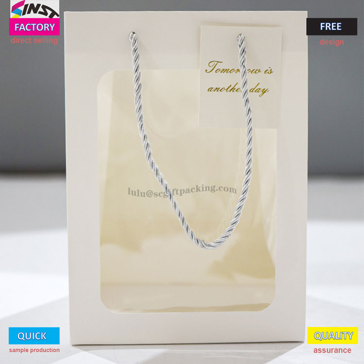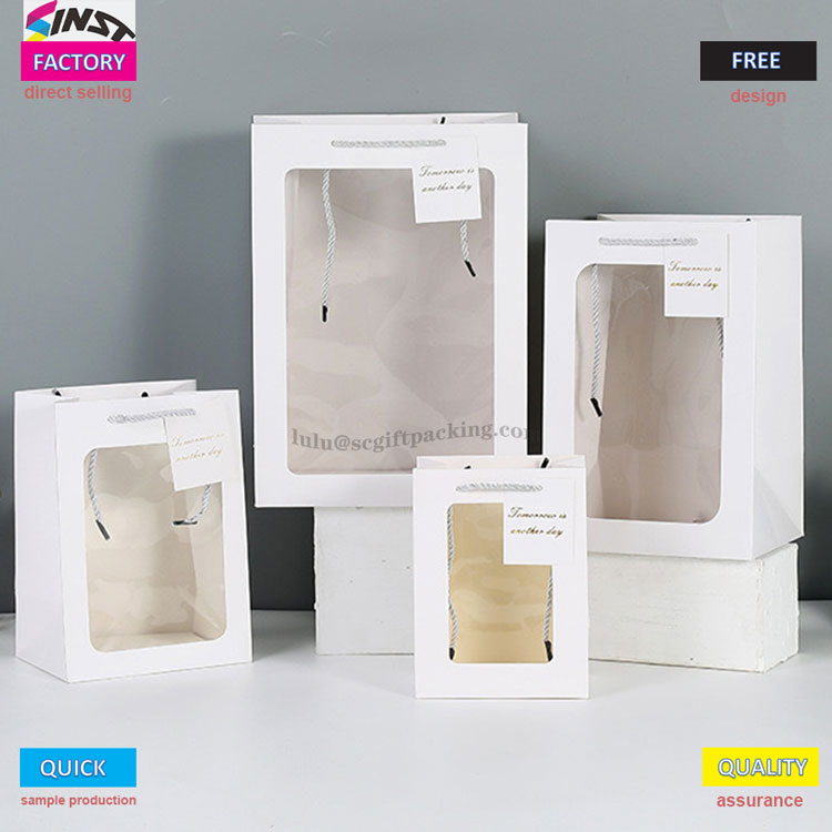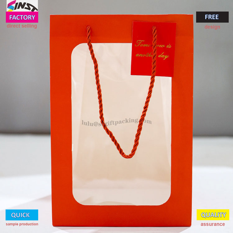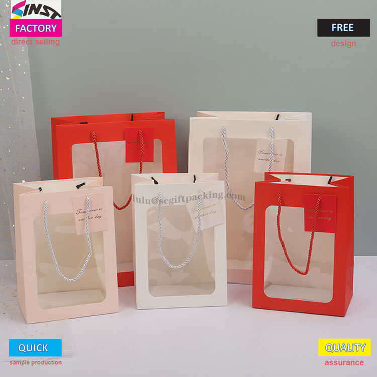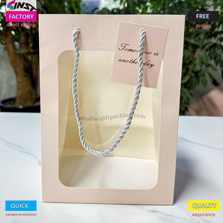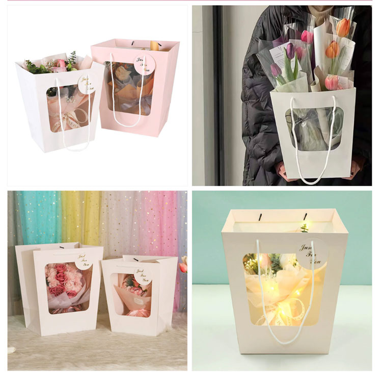 Questa borsa da fiori combina perfettamente l'estetica e la praticità. Il design della finestra trasparente consente una presentazione intuitiva di regali, creando un'esperienza visivamente accattivante per i clienti, consentendo loro di selezionare più accuratamente gli articoli di cui hanno bisogno. La tote bou wouquet wouquet dispone di una maniglia a tre fili staccabile nella parte superiore per un facile trasporto e può essere staccata per ospitare altri oggetti. È un modo perfetto per migliorare lo stile di vari articoli, tra cui oggetti culturali e creativi, prodotti di bellezza e imballaggi per dessert! Goditi uno sconto del 10% su ordini di oltre 10.000 pezzi, rendendo gli acquisti di massa un ottimo affare. È perfetto per attirare l'attenzione durante il marketing delle vacanze o per le vendite quotidiane.